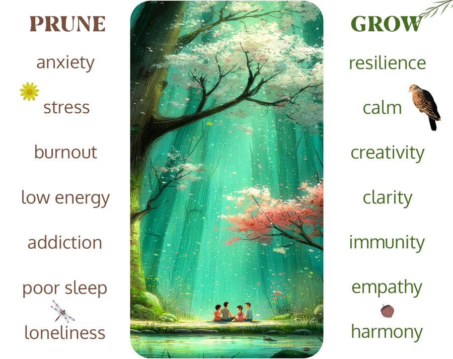 Healing Forest takes you on a fascinating journey to cultivate a calm mind, a healthy body and beautiful relationships. Discover timeless ideas that bring peace, joy, health with nature, in nature.